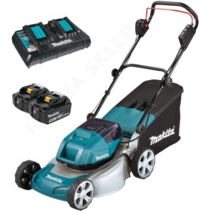 MAKITA DLM460PT2 akumulatorowa kosiarka do trawy 46cm 60L LXT 2x 18V 1450W BLDC XPT 2x 5.0Ah dwuportowa ładowarka